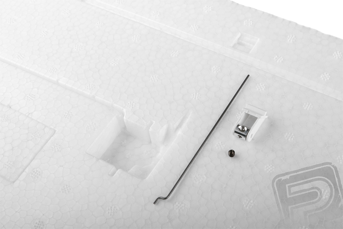 Kit obsahuje: trup vylisovaný z ELAPORu, křídlo vylisované z ELAPORu, ocasní plochy z ELAPORu, kompozitovou trubkovou spojku křídla, sklopnou vrtuli 7x6" s kuželem a unašečem s kleštinou 3,0 a 3,2 mm, sáček drobného příslušenství, arch samolepek a podrobný návod ke stavbě.