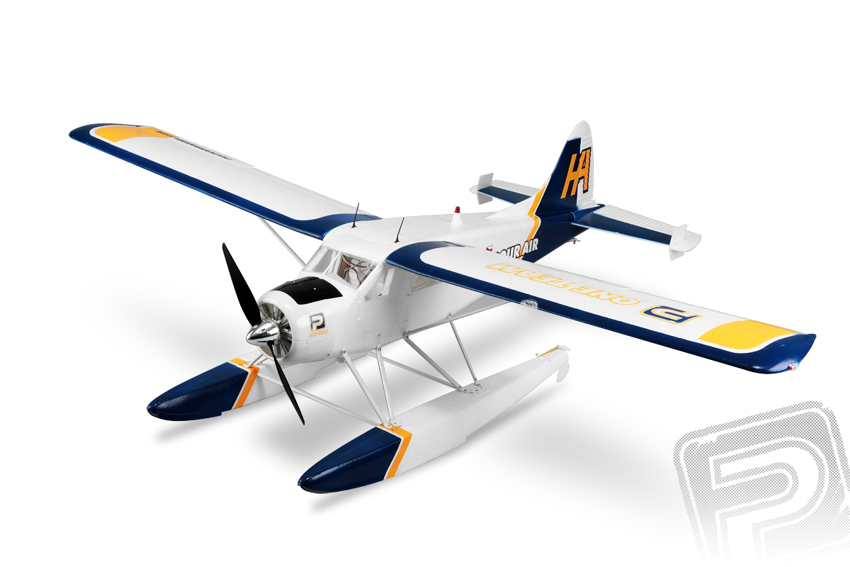 ARF set polomakety kanadského hornoplošníku o rozpětí 1520mm z extrudovaného polyolefinu (EPO) se střídavým motorem, 40A regulátorem a servy. Ovládaná křidélka, směrovka, výškovka, klapky. Kolový podvozek, plováky, funkční světla.