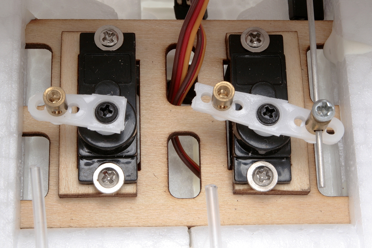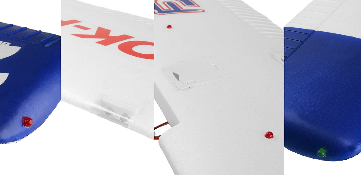 Ocasní plochy z EPP se upevňují k trupu pomocí plastových čepů. Serva směrovky a výškovky jsou uložena v kabině a jsou přístupná po sejmutí křídla.