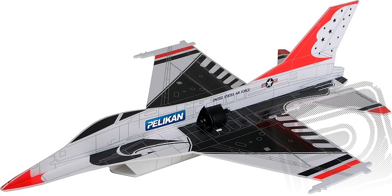 "Stínová" polomaketa amerického proudového stíhacího letadla poháněná dmychadlem o průměru 64 mm se střídavým motorem z deskového polystyrenu. Model je vhodný jako první model s dmychadlem pro pilota, který již zvládl pilotáž menších a rychlejších modelů s ovládanými křidélky. S F-16 se můžete vyřádit při samostatné akrobacii i při nahánění "agresorů" létajících s jiným modelem z naší řady "stínových" tryskáčů.
