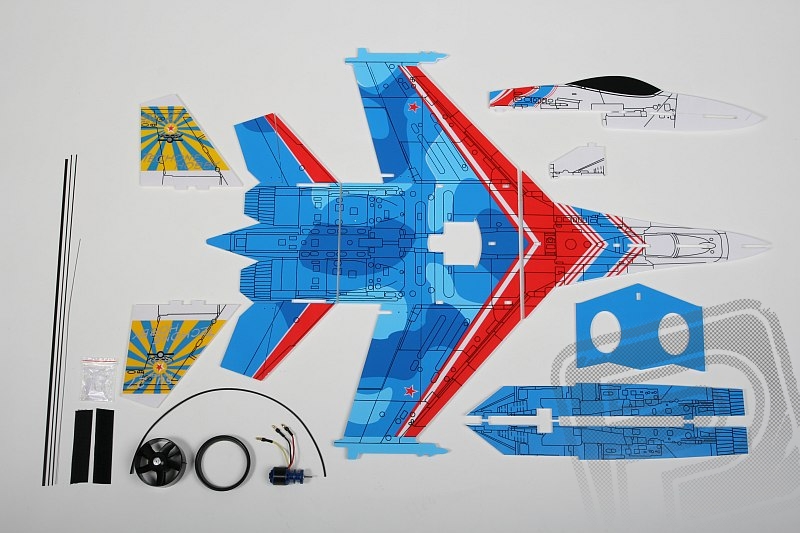 "Stínová" polomaketa ruského proudového stíhacího letadla poháněná dmychadlem o průměru 64 mm se střídavým motorem z deskového polystyrenu. Model je vhodný jako první model s dmychadlem pro pilota, který již zvládl pilotáž menších a rychlejších modelů s ovládanými křidélky. Se Su-27 se můžete vyřádit při samostatné akrobacii i při nahánění "imperialistických válečných štváčů" létajících s jiným modelem z naší řady "stínových" tryskáčů.