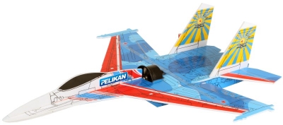 "Stínová" polomaketa ruského stíhacího letadla s pohonem dmychadlem 64 mm se střídavým motorem z deskového potištěného polystyrenu. Dmychadlo a střídavý motor součástí stavebnice.