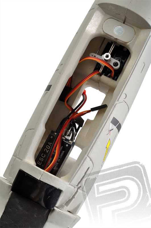 Pro ovládání modelu budete potřebovat aspoň čtyřkanálovou RC soupravu s malým přijímačem - spolehlivě stačí třeba CADET 4, který možná už máte "osahaný" ze spousty letů s Alphou 1500, Betou 1400, Cessnou 480... V tom případě se serva křidélek zapojí pomocí Y-kabelu do jednoho kanálu. Pro pohon poslouží dvoučlánkový pohonný Li-poly akumulátor cca 1000-1100 mAh (např. RAY nebo ještě lépe FOXY 1100 mAh 7,4 V)