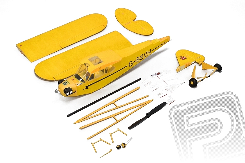 Stavebnice obsahující téměř hotový model letounu PIPER J-3 Cub z EPP o rozpětí 1400mm se střídavým motorem s regulátorem a osazenými 4 servy. Ovládaná křidélka, směrovka, výškovka. Prosklená kabina, odpružený podvozek.