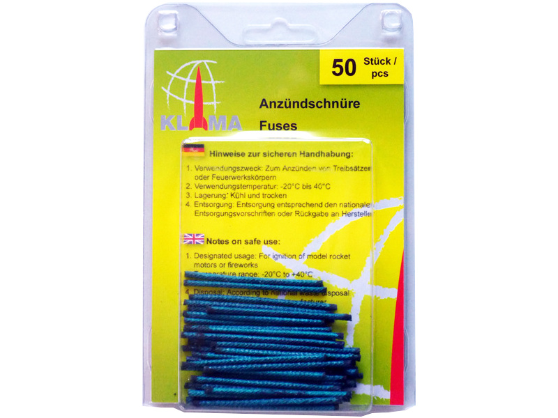 Klima zápalnice 2.5 x 60mm s dobou hoření 5-6 s se může použít jako alternativa k elektrickým palníkům. Jeden díl zápalnice se vloží a upevní do motoru a zapálí. Poté je čas cca 5 s na odstoupení do bezpečné vzdálenosti od rakety. Balení obsahuje 50 ks. Pouze osobám starším 18 let.