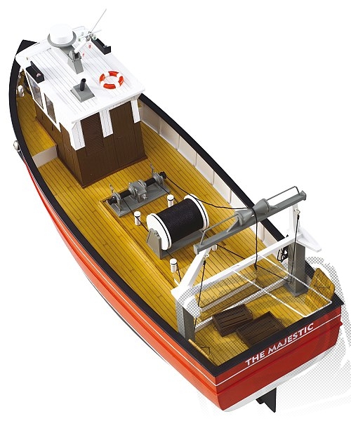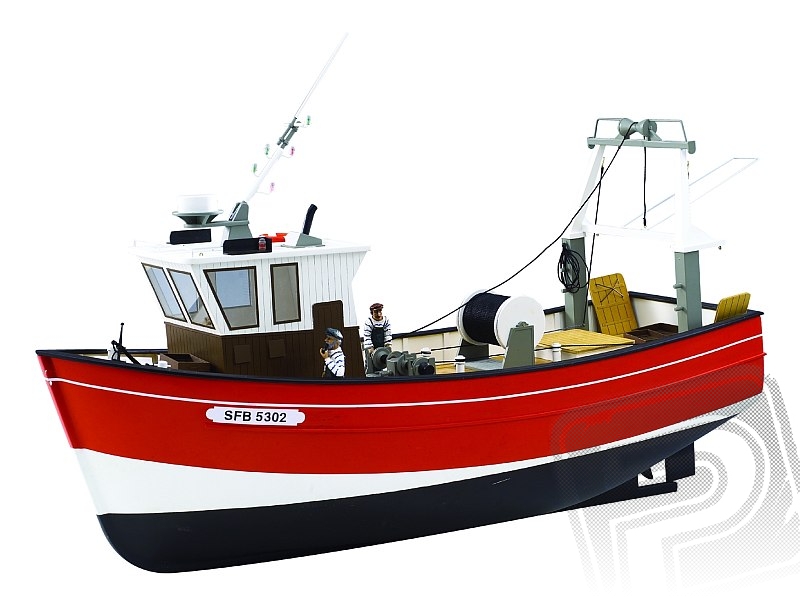 Hotový model rybářského člunu pro lov s vlečnou sítí (trawler) připravený k instalaci RC soupravy. Trup lodi je zhotoven z pevného skelného laminátu, má dvojité stěny s pěnovou výplní pro zajištění nepotopitelnosti, takže ani při střetnutí s "Dokonalou Bouří" nehrozí smutný osud filmových hrdinů. Paluba a maketově důkladně propracované nástavby jsou z kombinace vodovzdorné překližky a plastů. Odnímatelná nástavba poskytuje komfortní přístup k pohonné soustavě a RC vybavení. Skvělý dojem korunuje realistický jeřáb s navijákem vlečné sítě...