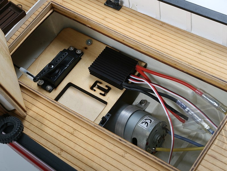 Model je poháněn stejnosměrným elektromotorem řady 550. Pro ovládání otáček motoru slouží obousměrný elektronický regulátor s BEC stabilizátorem napájení pro přijímač a servo kormidla. Díky tomu model nevyžaduje žádné přijímačové akumulátory, vše na palubě je napájeno z jediného pohonného akumulátoru. Směr plavby je ovládán kormidlem s nainstalovaným servem standardní velikosti.