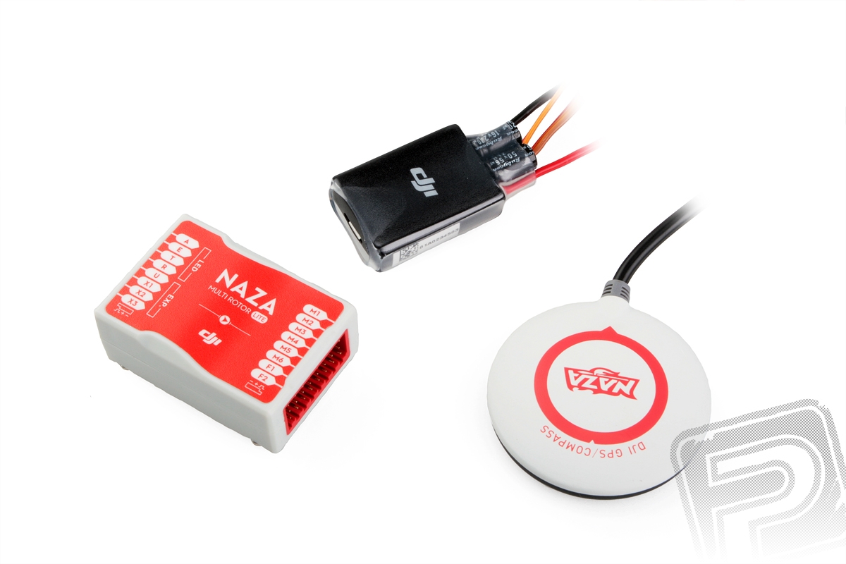 Combo profesionální řídící jednotky pro multikoptéry (s podporou S-BUS sběrnice, fail-safe, 3 letovými režimy) a GPS modulu. Podporované typy: quadrokoptéry I4, X4, hexakoptéry I6, X6, IY6, Y6. Hmotnost 25g (NAZA-M Lite) + 21g (GPS).