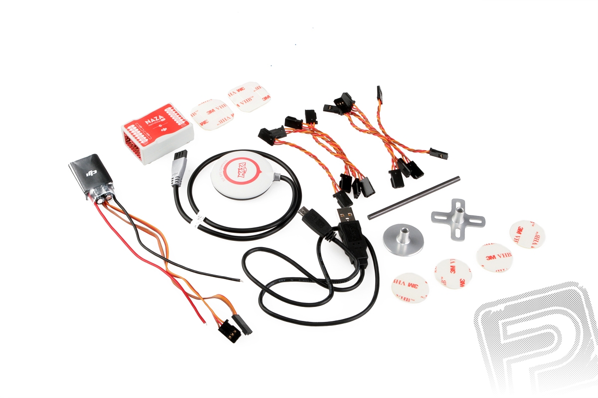 Sada comba NAZA-M LITE obsahuje: řídící jednotku MC, víceúčelovou jednotku napájení VU, Modul GPS/kompas, USB kabel, propojovací kabely pro připojení přijímače, oboustrannou pěnovou lepící pásku a český návod (originální anglický návod je ke stažení na našich webových stránkách nebo výrobce DJI).