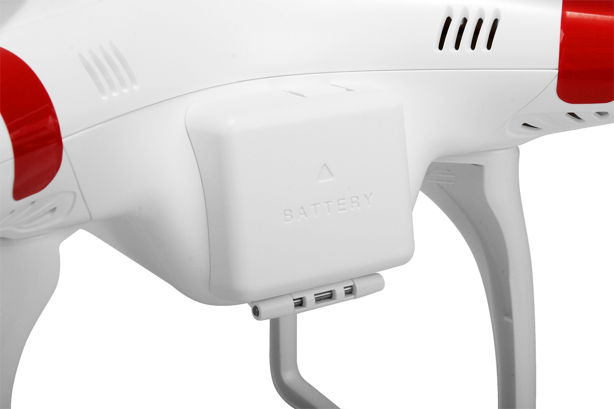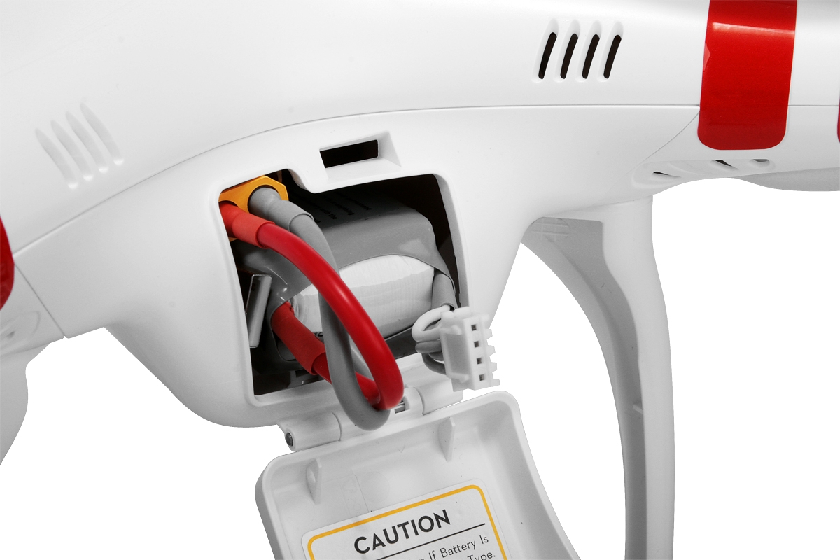 Základem draku modelu je kompaktní skořepinový výlisek z odolného plastu, které nese motory, řídící elektroniku, pohonný akumulátor a případné "užitečné zatížení". Model je poháněn čtyřmi střídavými motory 2212-0920 s vrtulemi 8x4,5". Pro napájení slouží tříčlánkový Li-Po akumulátor 2200 mAh, který se ukládá do schránky s odklápěcím víčkem ve středu modelu. Pro signalizaci provozních stavů slouží tříbarevný LED indikátor s vysokou svítivostí. Výbornou "čitelnost" polohy modelu zajišťují LED světla s vysokou svítivostí na spodní straně ramen - přední ramena svítí červeně, zadní zeleně. Přistávací zařízení zařízení tvoří dvojice plastových profilů, která nese také přijímačovou anténu a čidlo GPS/kompasu. Užitečné zatížení se zavěšuje pod střední část modelu, s Phantomem je dodáván nastavitelný držák pro oblíbené nezničitelné outdoorové kamery Go Pro.
