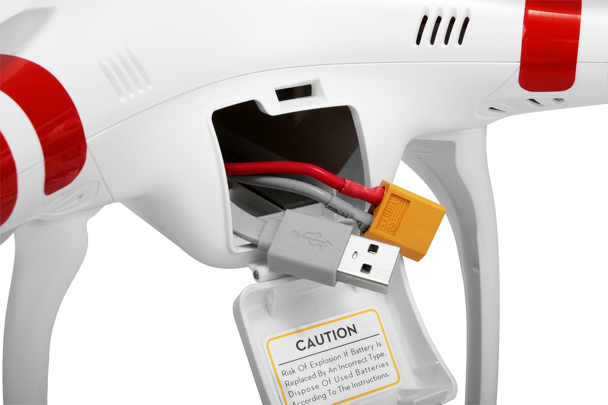 Všechny tyto funkce jsou již naprogramovány a nastaveny ve výrobě, na vás zůstává jen velmi jednoduchá kalibrace kompasu. Zkušený pilot ale může - pokud chce - s pomocí obslužného softwaru pro řídící jednotku NAZA-M (musí to být verze 2.0 nebo novější) a osobního počítače nebo notebooku s operačním systémem Windows (XP, Win7) připojeného prostřednictvím USB kabelu dolaďovat nastavení palubní elektroniky podobně, jako je to možné u autopilotu DJI NAZA-M. USB port najdete v modelu uvnitř prostoru pro pohonný akumulátor.