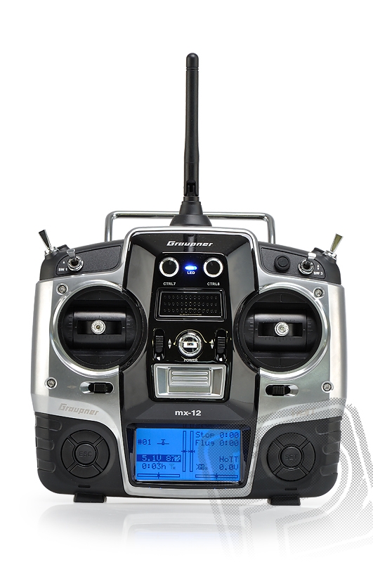 MX-12MX-12 se ž řídícími funkcemi a technoogií Graupner Hott umožňuje pokročilé ovládání široké škály RC modelů. Použití Graupner Hott 2,4 GHz technologie přenosu zaručuje vysokou spolehlivost díky obousměrné komunikaci mezi vysílačem a přijímačem s integrovanou telemetrii a ultra rychlými odezvami.