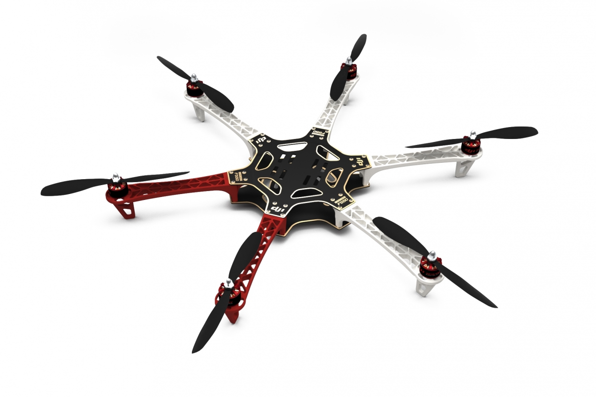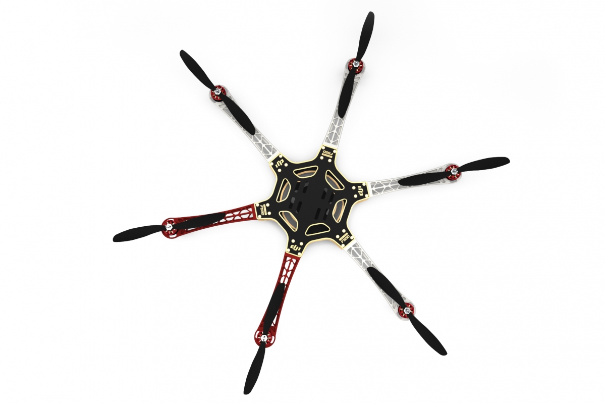 Stavebnice mechaniky hexakoptéry se 6 střídavými motory C2312E a 20A regulátory. Kompozitové centrální desky s rameny z plastu plněného skelnými vlákny. Rozpětí ramen 550mm, prázdná hmotnost 478g, letová hmotnost 1200-2400g.