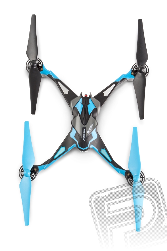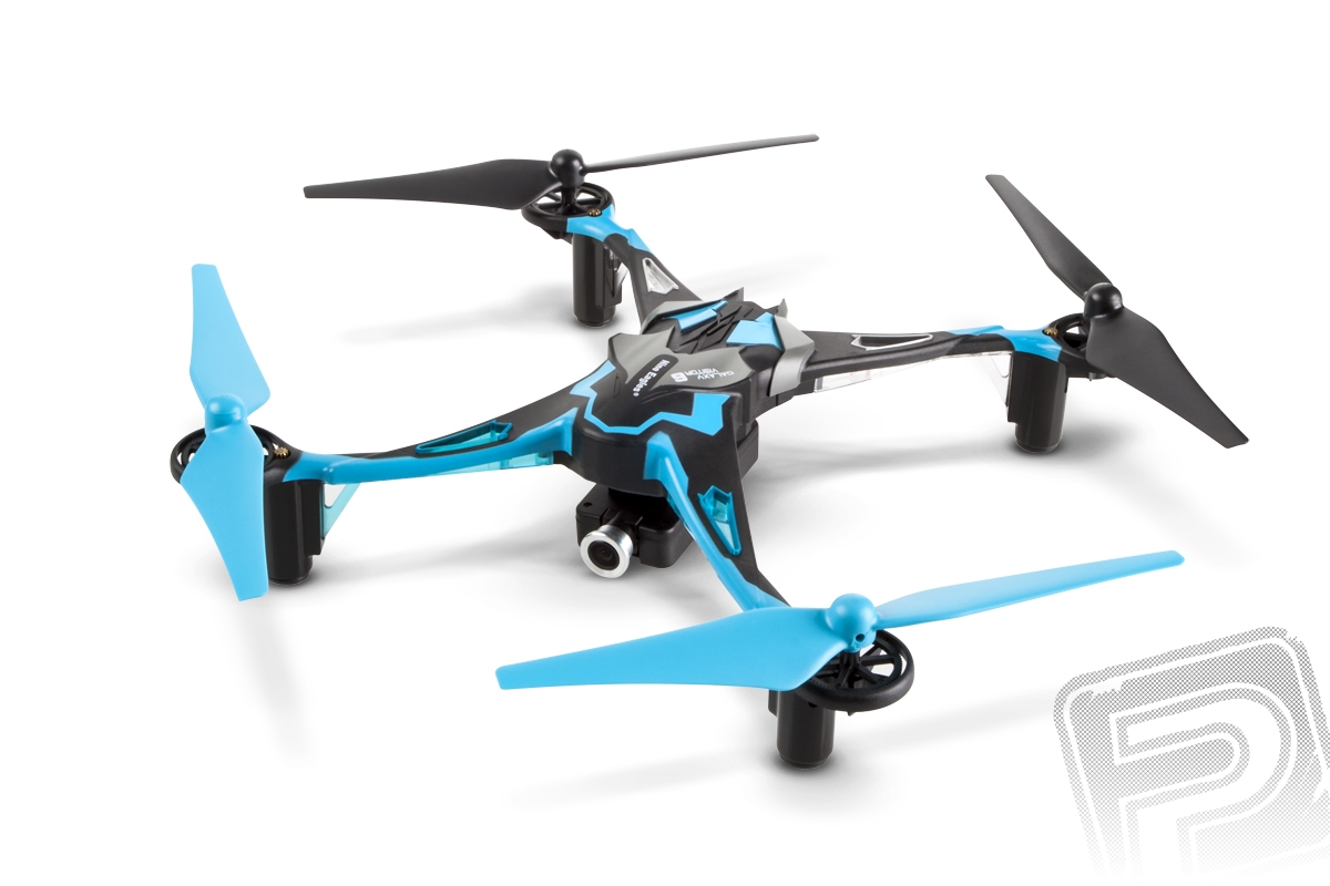 Plastové vrtule o průměru 160 mm dodávají modelu dostatečný výkon a stabilitu. Jednotlivá ramena jsou osvětlena sadou LED a spolu se zadní červenou diodou umožní pilotovi určit orientaci stroje, která je navíc umocněna "FPV" záběrem na mobilní telefon.