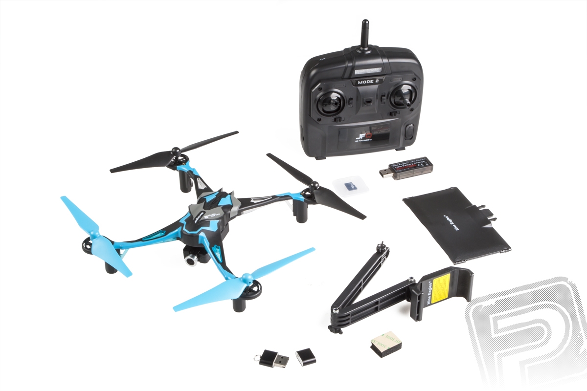 Mini kvadrokoptéra se 160mm rotory a miniaturní wi-fi kamerou pro klidné i akrobatické poletování, pořizování foto/video snímků doma i venku a FPV létání. RC set s 2.4GHz vysílačem, LiPo aku, wi-fi kamerou a USB nabíječem pohonného článku.