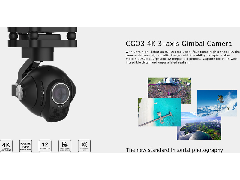 Doba letu je 20 až 25 minut na jeden akumulátor, snímaný obraz je 4K/30fps ultra HD video (1080 řádků) / 120 fps, nebo můžete pořizovat fotografie o rozlišení 12 MPx. Kamera i gimbal se ovládá pomocí vysílače.