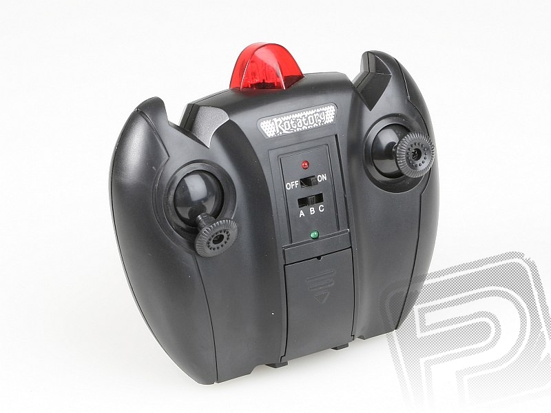 Pro ovládání modelu slouží tříkanálový proporcionální infračervený vysílač. Řídící povely z vysílače se předávají do palubní řídící jednotky zahrnující tříkanálový přijímač, miniaturní piezo gyro a dvojici regulátorů otáček pro pohonné motory a regulátor pro ocasní motor klopení. Vysílač je napájen šesti tužkovými (AA) bateriemi, tento zdroj slouží zároveň i pro nabíjení pohonného akumulátoru vrtulníku. Pro současný provoz až tří modelů v jedné místnosti je vysílač vybaven přepínačem provozní frekvence. Provozní frekvence modelu (A, B, nebo C) je pevně dána a udává ji nálepka na spodní části vrtulníku.