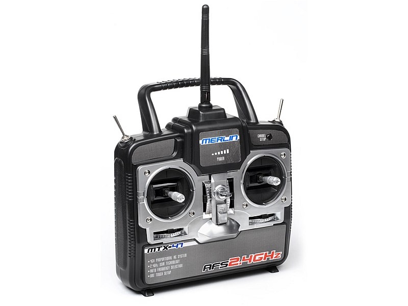 K ovládání slouží čtyřkanálová RC souprava pracující v pásmu 2,4G s přepínačem velikosti výchylek. Je vybavena také zásuvku Učitel-Žák, takže vysílač je možno použít i pro ovládání PC letového simulátoru. Vysílač je dodáván standardně v Módu 2 (ovladač plynu vlevo), ale lze jej snadno "přeoperovat" na uspořádání v Módu 1 s ovladačem plynu napravo.