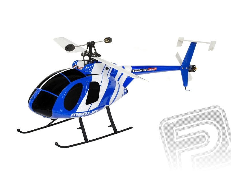 MERLIN Tracer 240 představuje rozvinutí konstrukčních principů, které se osvědčily u oblíbeného jednorotorového pokojového vrtulníku Colibri PRO. Také Tracer 240 je klasické koncepce s jedním nosným rotorem (se stabilizátorem Bell-Hiller) a vyrovnávacím rotorem neseným na ocasním nosníku. Už to ale není sotva třicetigramový drobeček, ale celkem robustní chlapák s nosným rotorem o průměru 380 mm a letovou hmotností 185 g. Díky tomu je vhodný nejen pro létání ve velkých místnostech, tělocvičnách a halách, ale zalétáte si s ním bezpečně i venku za bezvětří nebo slabého vánku. Tracer 240 bude hvězdou vlahých letních podvečerů, kdy se vítr utiší, a vy si budete vychutnávat létání s elegantním strojem ve stylu MD-530.
