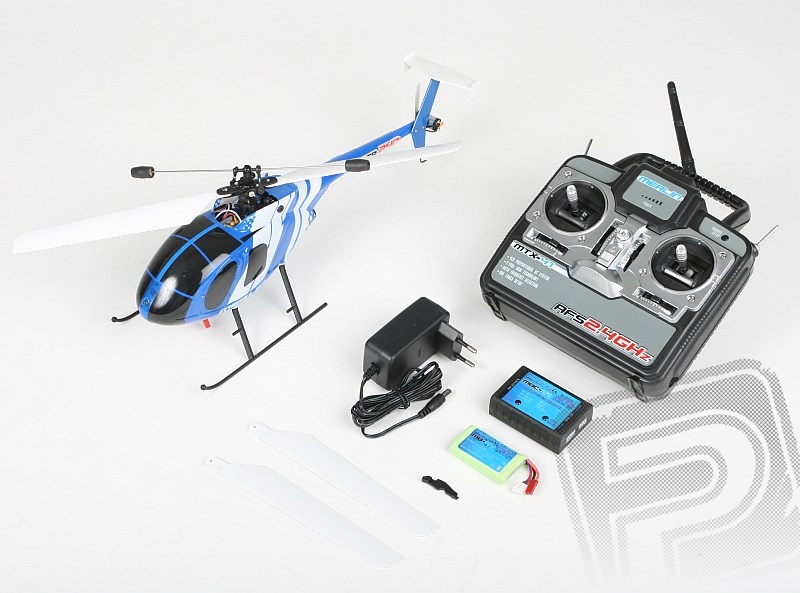 Jednorotorový elektrovrtulník s nosným rotorem 380mm, vyniká vysokou stabilitou a je dodáván v setu s vysílačem 2,4GHz(mód 1). síťovým nabíječem, náhradní sadou listů a Li-po pohonným akumulátorem 7,4V 600mAh.