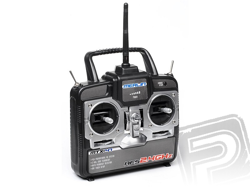 K ovládání slouží čtyřkanálová RC souprava pracující v pásmu 2,4G s přepínačem velikosti výchylek. Je vybavena také zásuvku Učitel-Žák, takže vysílač je možno použít i pro ovládání PC letového simulátoru. Vysílač je dodáván standardně v Módu 2 (ovladač plynu vlevo), ale lze jej snadno "přeoperovat" na uspořádání v Módu 1 s ovladačem plynu napravo.