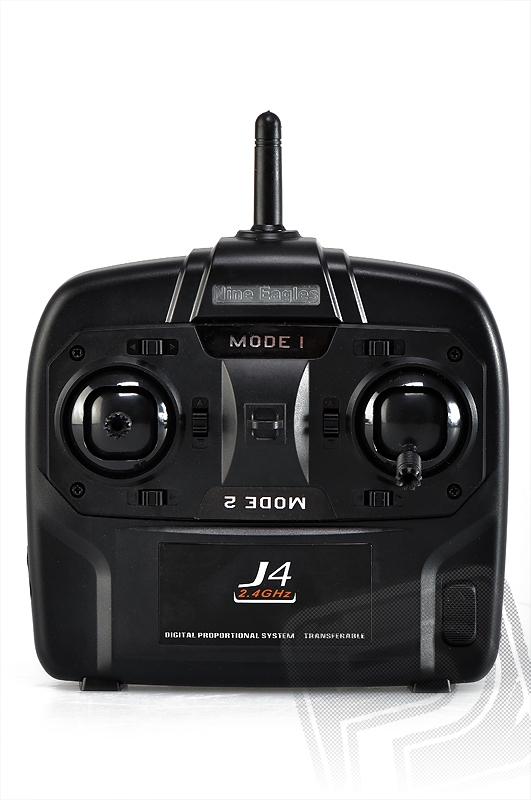 K ovládání slouží čtyřkanálová RC souprava J4 pracující v pásmu 2,4G s možností přepínání velikosti výchylek. Vysílač lze snadno po vyšroubování 4 šroubů, vyjmutí a otočení zásuvného modulu s křížovými ovladači převést na uspořádání v Módu 2 s ovladačem plynu vlevo nebo v Módu 1 (ovladač plynu vpravo) - právě tak, jak vám to vyhovuje.