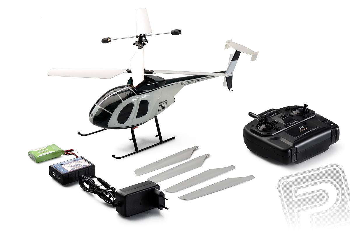 Dvourotorový elektrovrtulník s nosným rotorem 340mm, vyniká vysokou stabilitou a je dodáván v setu s vysílačem 2,4GHz(mód 1a 2). síťovým nabíječem, náhradní sadou listů a Li-po pohonným akumulátorem 7,4V 800mAh.