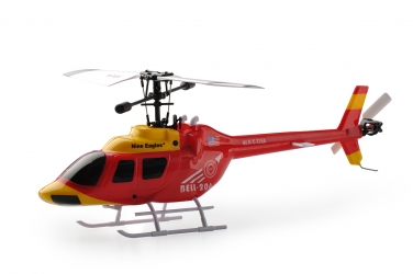 BELL 206 používá mechaniku osvědčenou u sportovního modelu SOLO PRO 328 - je to vrtulník klasické koncepce s jedním nosným rotorem (se stabilizátorem Bell-Hiller) a vyrovnávacím rotorem neseným na ocasním nosníku. Už to ale není sotva třicetigramový drobeček, ale celkem robustní chlapák s nosným rotorem o průměru 328 mm a letovou hmotností 112 g. Díky tomu je vhodný nejen pro létání ve velkých místnostech, tělocvičnách a halách, ale zalétáte si s ním bezpečně i venku za bezvětří nebo slabého vánku. BELL 206 bude hvězdou vlahých letních podvečerů, kdy se vítr utiší, a vy si budete vychutnávat létání s elegantním strojem.