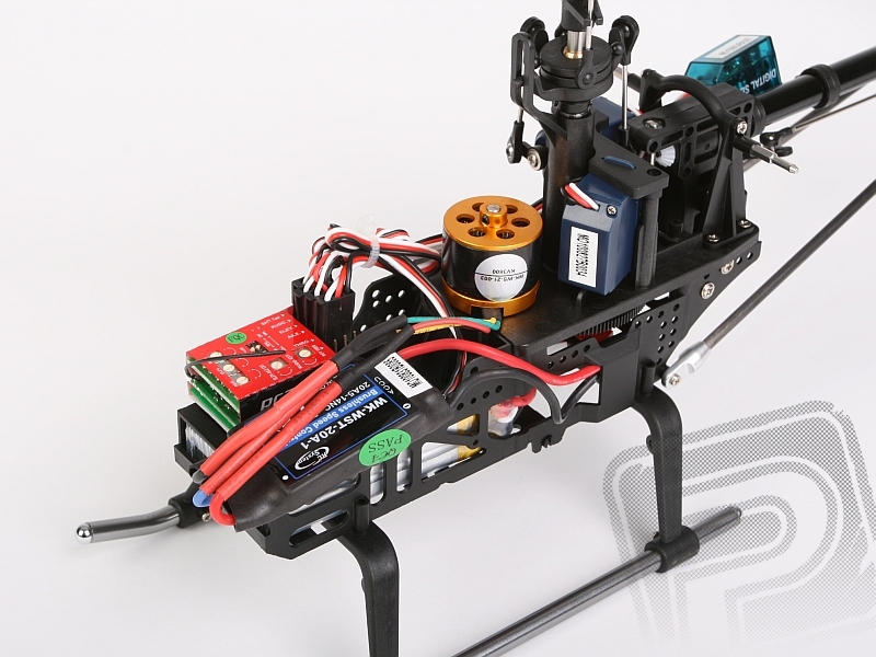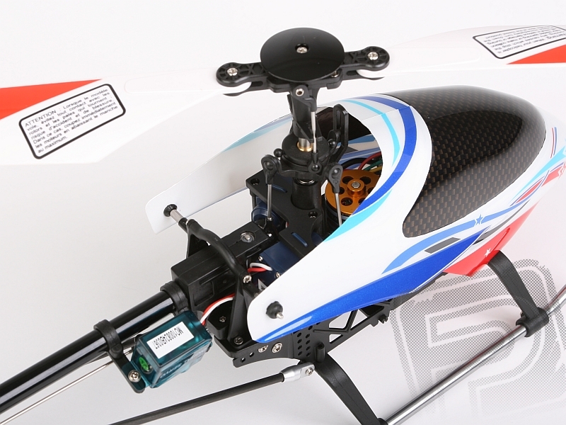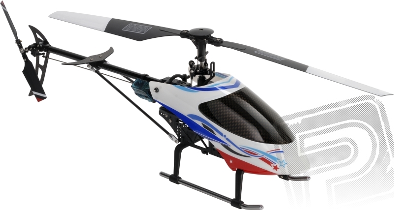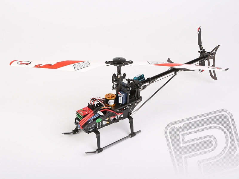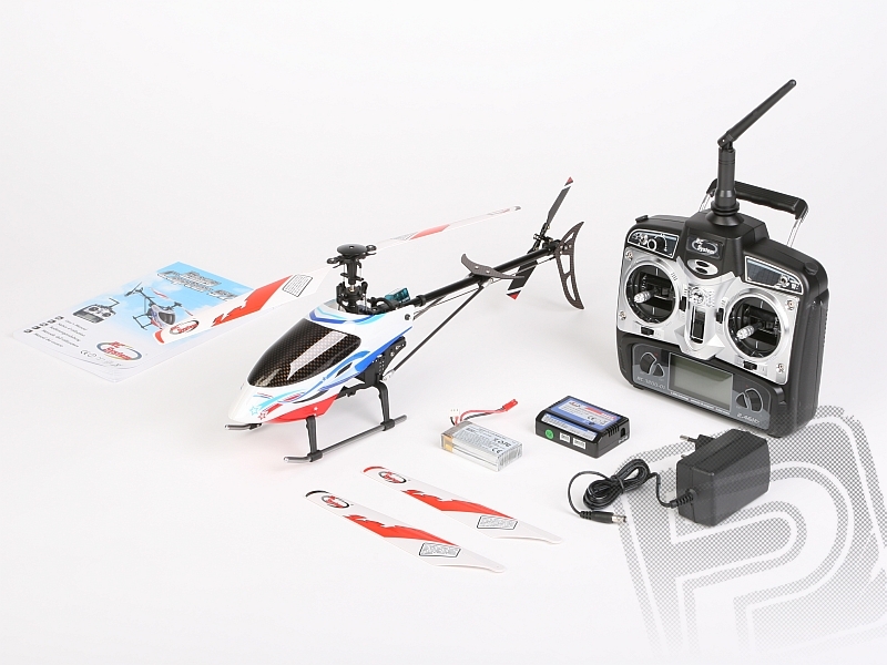 Velmi dobře ovladatelný model s bezpádlovou mech., 3osé gyro zabudov. v přijímači zajišťuje výbornou stabilitu. 4k RC soupr. 2.4GHz vč. serv, kombin. řídící jednotka (RX, gyro), reg., aku 7,4V/1000mAh a nabíječ. rotor 440mm, hmotnost 265g.