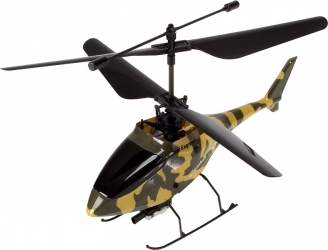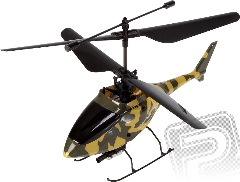 Pokojový dvourotorový elektrovrtulník 31g s infračerveným paprskometem a detektorem zásahů pro letecké souboje dodáváný v setu s vysílačem 2,4GHz (mód 1 - nelze měnit) a pohonným akumulátorem LiPo 120mAh. Zelenožlutá kamufláž.