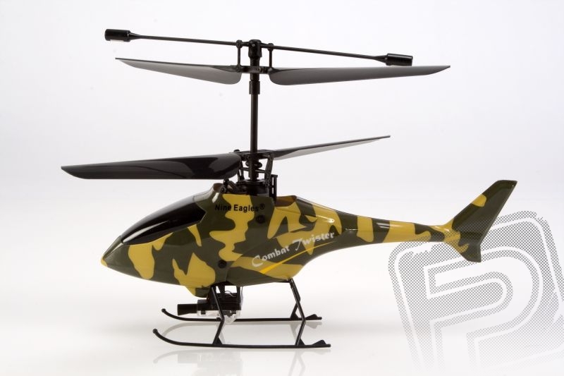 Konstrukce Combat Twisteru je převážně plastová s uhlíkovými díly. Jeho ovládání zajišťuje řídící jednotka, která v sobě skrývá nejen regulátory, přijímač, ale i serva pro ovládání cykliky a gyroskop. Díky své nízké hmotnosti je Combat Twister prakticky nerozbitný. K ovládání slouží RC souprava pracující v pásmu 2,4GHz. Pozor: vysílač není možné jako u většiny modelů Nine Eagles přestavět z Módu 1 na Mód 2 nebo naopak, model je třeba zakoupit již v požadovaném módu. Vysílač umožňuje přepínání dvojích výchylek a je vybaven displejem, který znázorňuje, jaké výchylky (velké/malé) jsou zapnuty, pozici digitálních trimů apod. Na horní straně je vlevo i vpravo opatřen tlačítky - spouštěmi -ovládajícími palbu z infračerveného paprskometu. Stisknutí tlačítka je doprovázeno zvukem kulometné palby ozývajícím se z reproduktorku na vysílači.