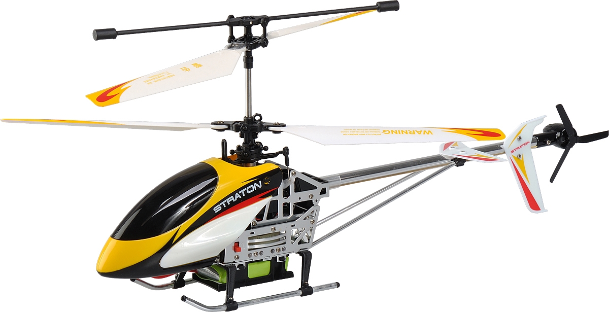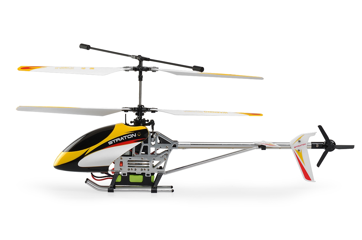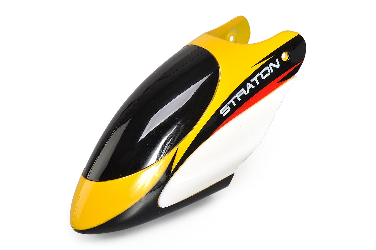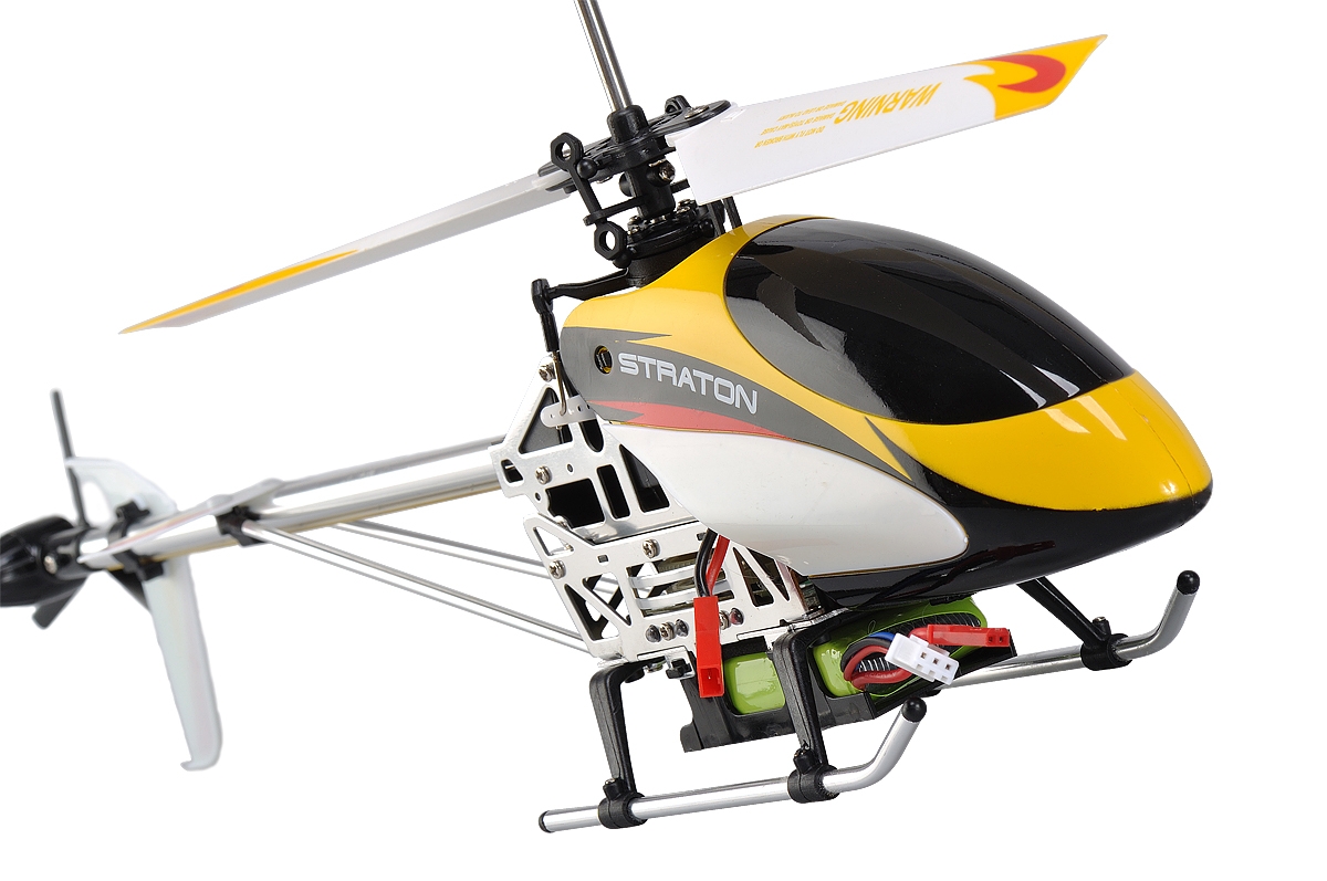 Velký dvourotorový vrtulník STRATON je klasické koncepce se dvěma souosými protiběžnými nosnými rotorem s pevným kolektivem se stabilizátorem Bell-Hiller spojeným s horním rotorem. Díky nosným rotorům o průměru 348 mm poháněným dvěma motory řady 250 napájeným z Li-poly dvoučlánku 850 mAh už to není žádný drobeček do obýváku. STRATON je vhodný pro létání ve velkých místnostech, tělocvičnách a halách, ale zalétáte si s ním bezpečně i venku za bezvětří nebo slabého vánku. STRATON bude hvězdou vlahých letních podvečerů, kdy se vítr utiší, a vy si budete vychutnávat létání s elegantním strojem v elegantním sportovním designu.