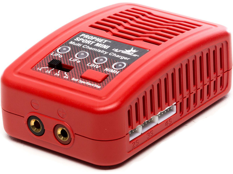 Obsahem balení je síťový nabíječ Dynamite Prophet Sport Mini, nabíjecí kabel EC3 s banánky, síťový kabel do zásuvky a návod k použití.