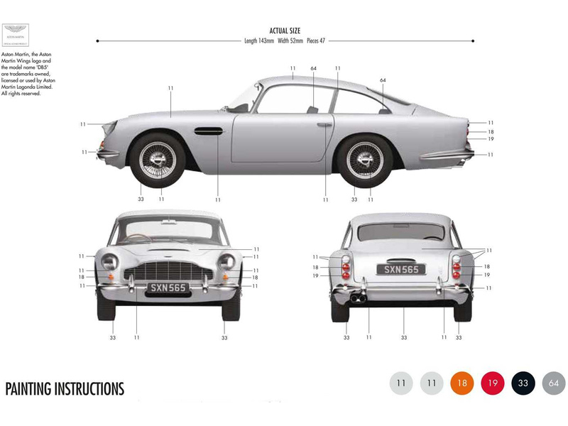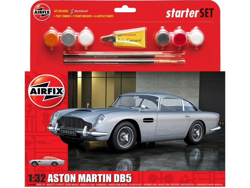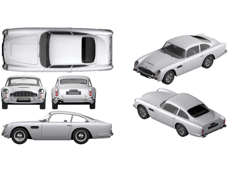 Plastikový model auta Airfix A50089A Aston Martin DB5 - Silver v měřítku 1:32 ke slepení. Balení obsahuje 42 dílků, stavební obtížnost 1.