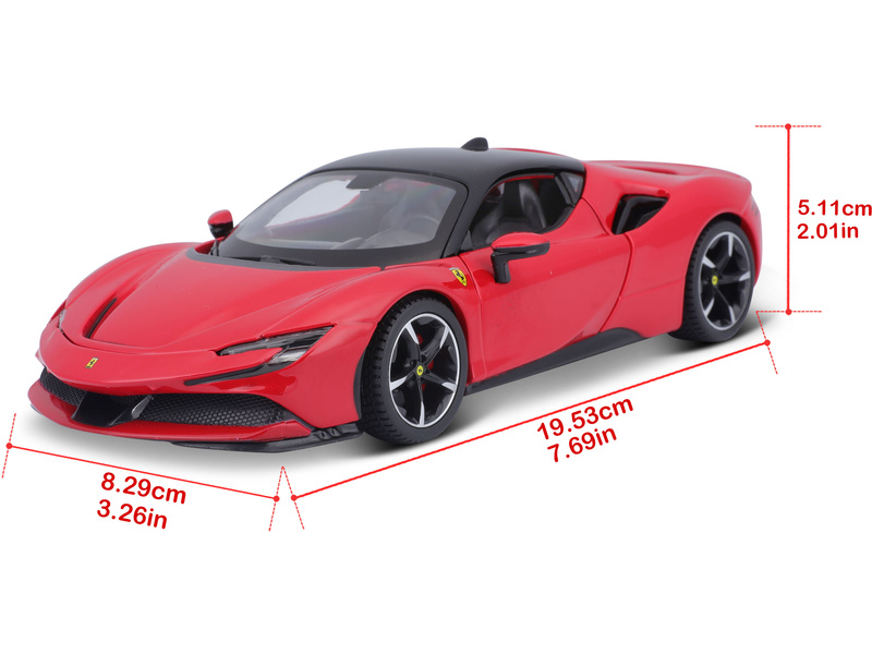 Kovový model auta 1:24 Bburago 18-26028 Ferrari SF90 Stradale, nejen pro sběratele. Model je v detailním provedení. Barva modelu je červená.