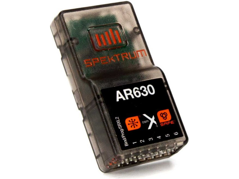 Nový 6-kanálový RC přijímač Spektrum AR630 se stabilizací AS3X, telemetrií, funkcí SAFE, kompatibilní s modulací DSMX/DSM2 v pásmu 2,4 GHz s plným dosahem. Integrovaná anténa v krabičce. Velmi malé rozměry a hmotnost pouze 8 g - ideální pro menší RC modely letadel! Pokud chcete hmotnost ještě více snížit, můžete přijímač provozovat bez plastové krabičky (plošný spoj je osazen pouze z jedné strany).