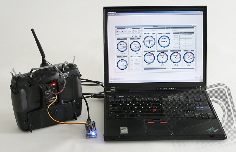 Devítikanálová RC počítačová souprava 2.4GHz (AFHSS s telemetrií) s křížovými ovladači. Vysílač s Tx aku, přijímače Optima 7 a Minima 6T. Podsvícený dotykový LCD display.
