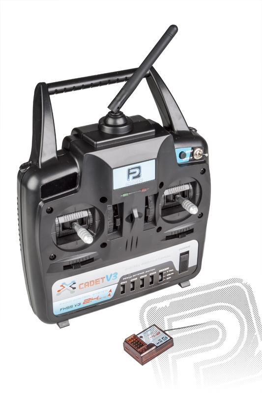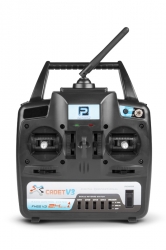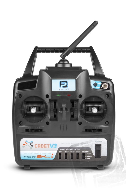 Pětikanálová RC souprava 2.4GHz FHSS s křížovými ovladači v Módu 2. Vysílač s přepínači smyslu výchylek, vypínatelnými mixy, 6-k přijímač s fail-safe. RC souprava pro RC sety Pelikan Daniel, pro rekreační parkflyery, elektrolety, lodě atd.