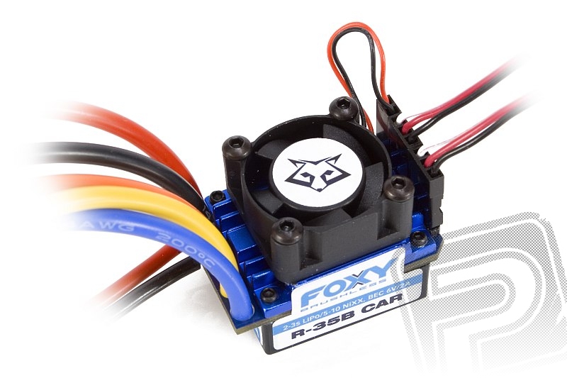 Programovatelný elektronický regulátoru pro střídavé motory pro modely aut popř. i lodí. Je určen pro ovládání otáček střídavých motorů bez snímačů ("sensorless") v RC autech v měřítcích 1:16 až 1:10. Použití moderních MOSFET výkonových tranzistorů a hliníkového chladiče s aktivním chlazením ventilátorem zajišťuje vysokou proudovou zatížitelnost při malých rozměrech a nízké hmotnosti. Výkonný spínaný stabilizátor napájení SBEC vestavěný v regulátoru zaručuje tu nejvyšší výkonnost serva řízení - bez ohledu na to, jak je rychlé a silné, vždy pro ně budete mít dostatek energie! Regulátor můžete snadno a rychle programovat pomocí karty FOXY Card CAR 1:10 dodávané v základní sadě.