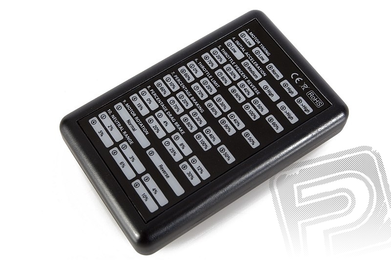 Programovatelný střídavý regulátor pro modely aut. Trvalý proud 35A(špičkový 190A), napájení 5-10NC/2-3 LiPO článků, hmotnost 70g, BEC 6V/2A. Dodáván spolu s LED programovací kartou.
