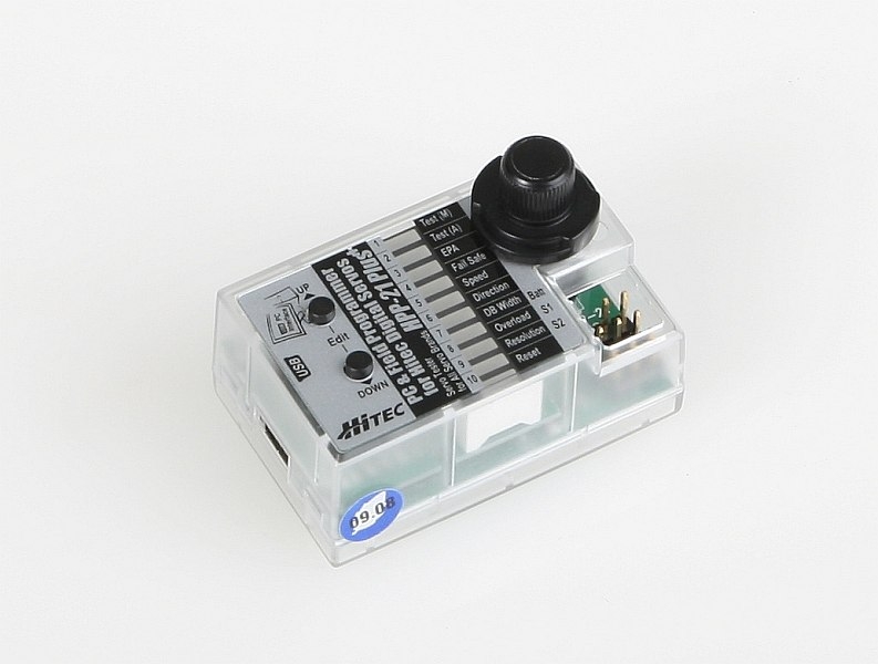 PC rozhraní pro softwarový programátor digitálních serv Hitec (včetně nové řady HS-7xxx) a servotester pro všechna serva. Navíc umožňuje "polní" ovládání bez PC, vybaven ovládacími tlačítky a LED indikací.
